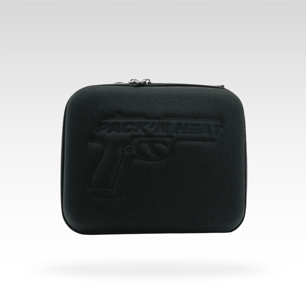 Introducing the ultimate Hearing Protection Case, meticulously designed for both style and functionality. This black hard-shell case proudly showcases the iconic Pack’n Heat gun logo on its exterior, embodying your passion for firearms. The touch of a metallic rose gold zipper adds a luxurious finish, making it the perfect shooting accessory to bring with you to the range.