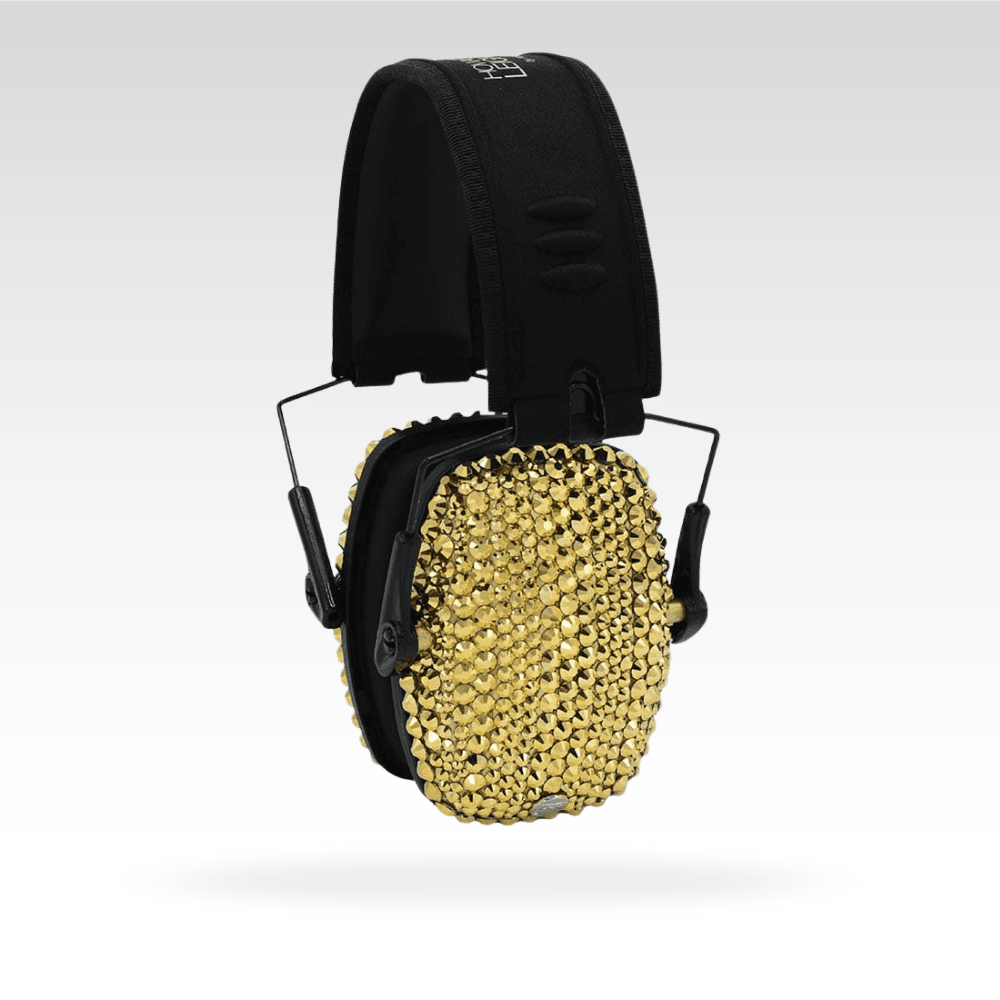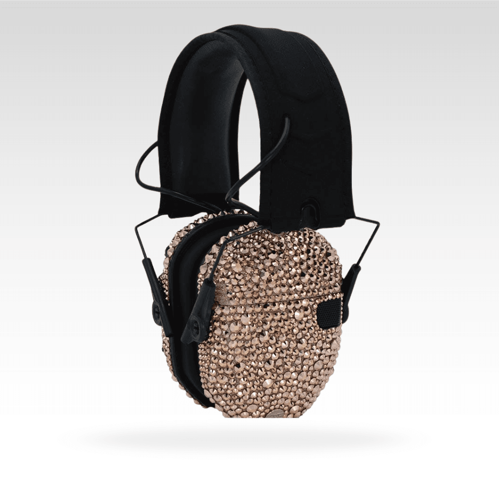 Absolutely stunning! Â Comfortable, folding, slim shooting earmuffs are decorated with genuine Czech crystal, paired with matching safety glasses, and packed into a hard-shell case!