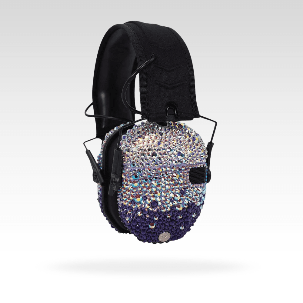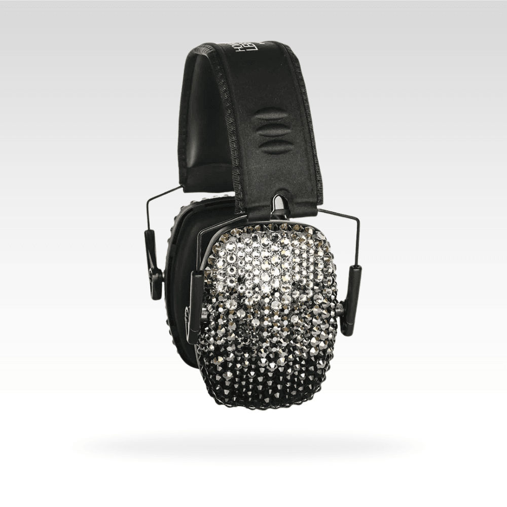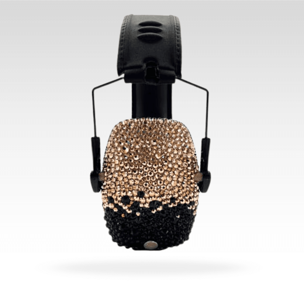 Absolutely stunning! Â Comfortable, folding, slim shooting earmuffs are decorated with genuine Czech crystal, paired with matching safety glasses, and packed into a hard-shell case!
