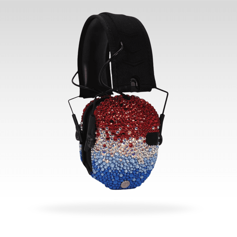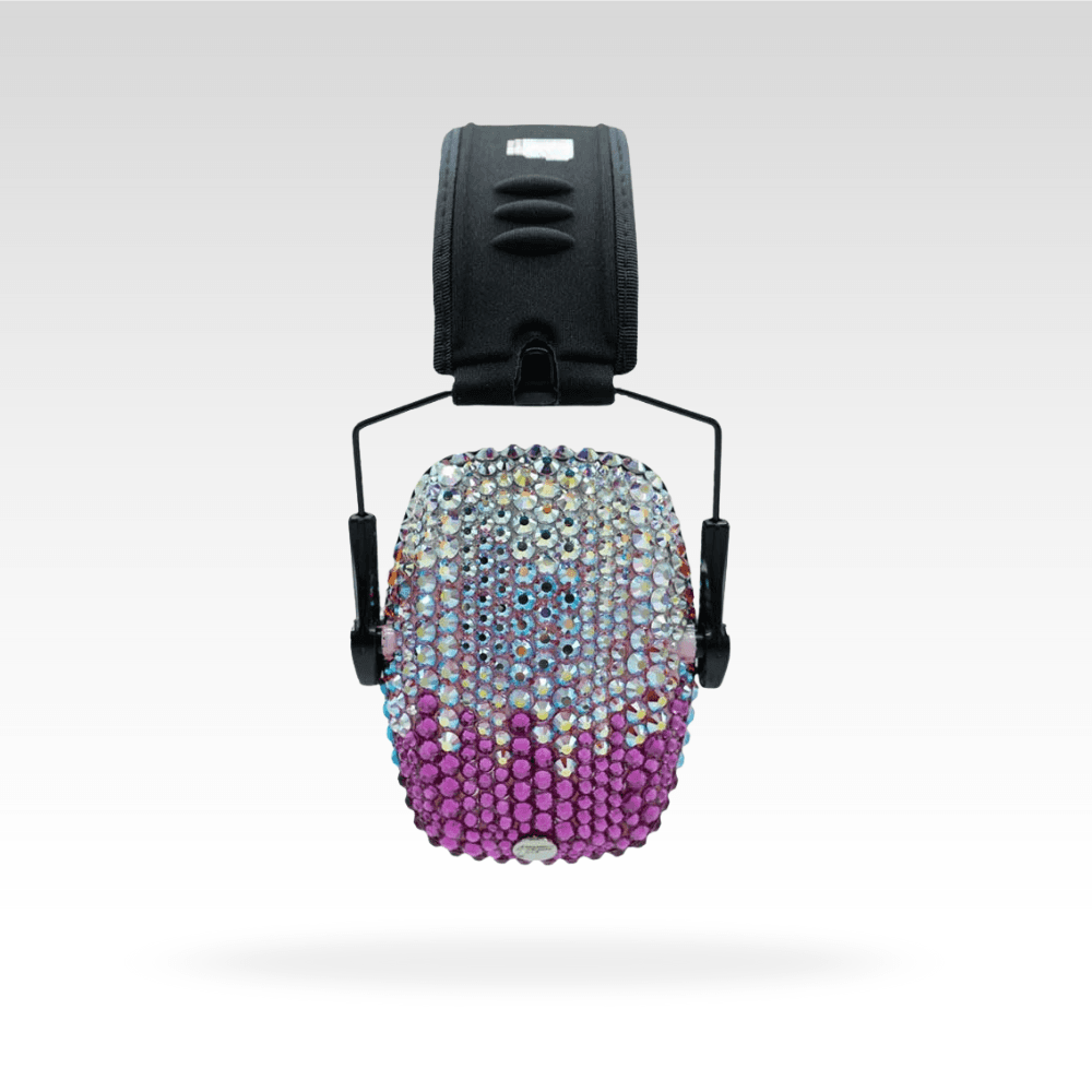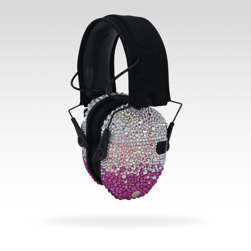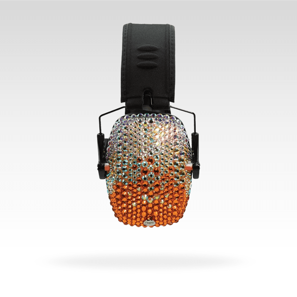 Absolutely stunning! Â Comfortable, folding, slim shooting earmuffs are decorated with genuine Czech crystal, paired with matching safety glasses, and packed into a hard-shell case!